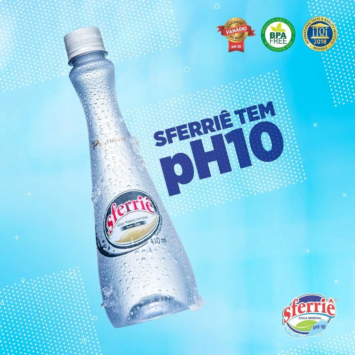 Elegante e arrojada, a linha Premium da Sferriê é sucesso garantido onde chega! Não importa se você está em casa, no trabalho, na academia ou numa ocasião especial, a água mineral Sferriê com pH 10 e Vanádio está com você em todos os momentos! Embalagens premium estão livres do Bisfenol – A!